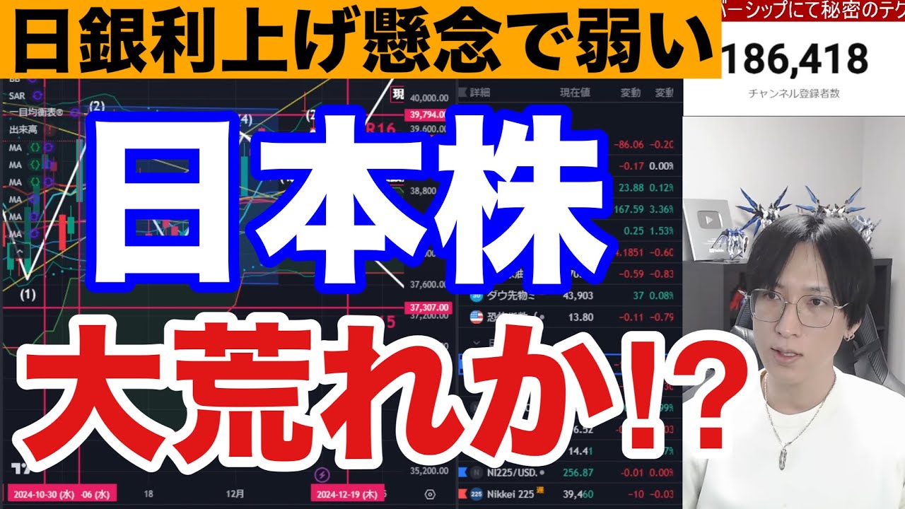 12/16【日本株波乱来るか】ドル円上昇で日銀利上げ不安→日経平均下落。7月高値銘柄、半導体株等弱い。レーザーテック下落。米国株、ナスダック、仮想通貨ビットコイン最高値推移。