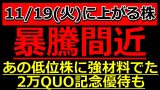 #株式投資 #日本株 #明日の注目株 #バーゲン #来週の注目株 #ストップ高 #ストップ安 #増配 #自社株買い #好決算 #好材料 #株主優待 #高配当株投資 #高配当 #配当金 #配当金生活 #株式分割 #投資 #株初心者 #注目銘柄 #あす上がる株 #明日上がる株 #ストップ高 #ストップ安 #デイトレ #決算 #日経 #日経平均 #仕手株 #仕手銘柄 #株価 #業績 #NYダウ #ダウ #FOMC #NASDAQ #ナスダック #消費者物価指数 #cpi