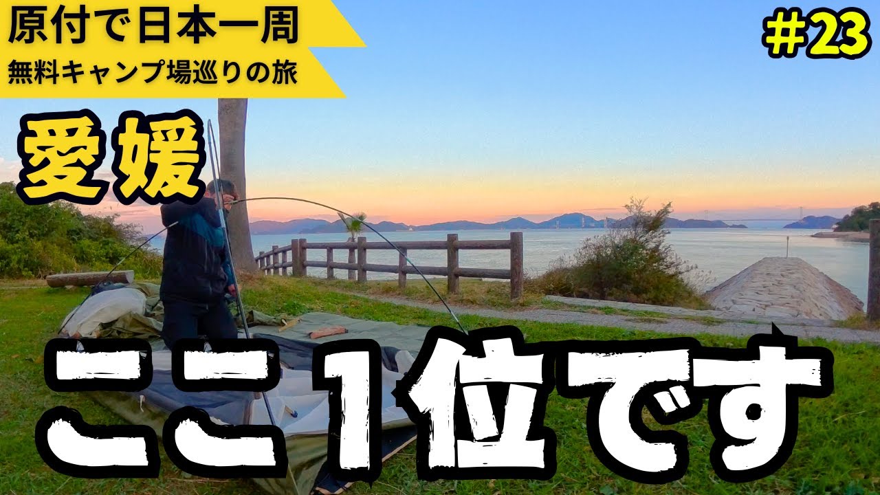 今回は四国・愛媛県にある、おすすめ無料キャンプ場(大角海浜公園かれい広場キャンプ場)でソロキャンプ。