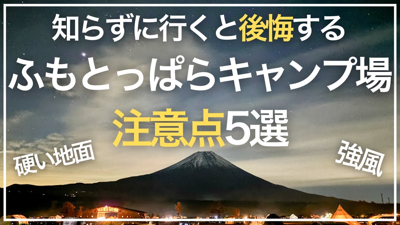 キャンパーの聖地「ふもとっぱらキャンプ場」に行く前に、知っておいてほしい注意点と対策を5つ紹介している動画です!知らないで行くと後悔する内容なので、ふもとっぱらキャンプ場に行く予定の方はぜひみてください!