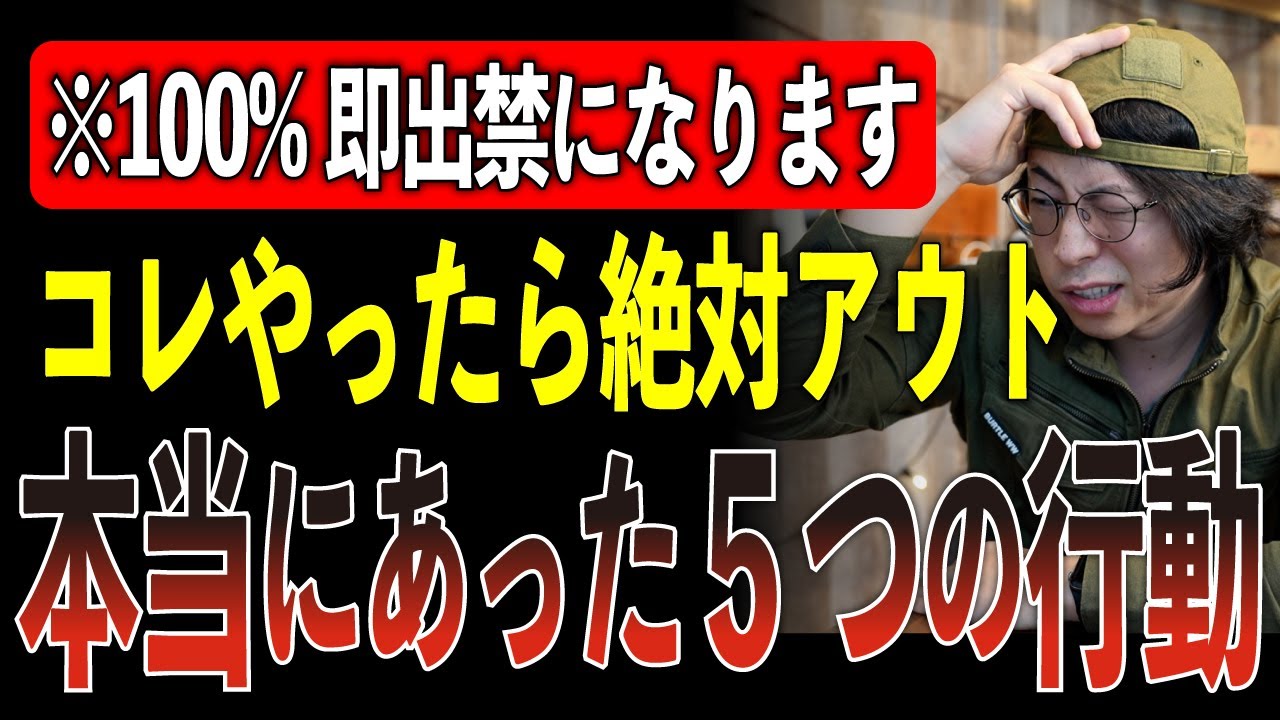 キャンプ場オーナーが本音で語る「即出禁客」の実態を徹底解説!⛺️ マナー違反や迷惑行為は周囲のキャンパーだけでなく、地域や自然環境にも深刻な影響を与えます。本動画では、実際に出禁となる危険な行動TOP5を紹介し、なぜキャンプ場運営にとって最大の悩みなのかを掘り下げます。安心してキャンプを楽しむために、絶対に真似してはいけない行動を知っておきましょう。