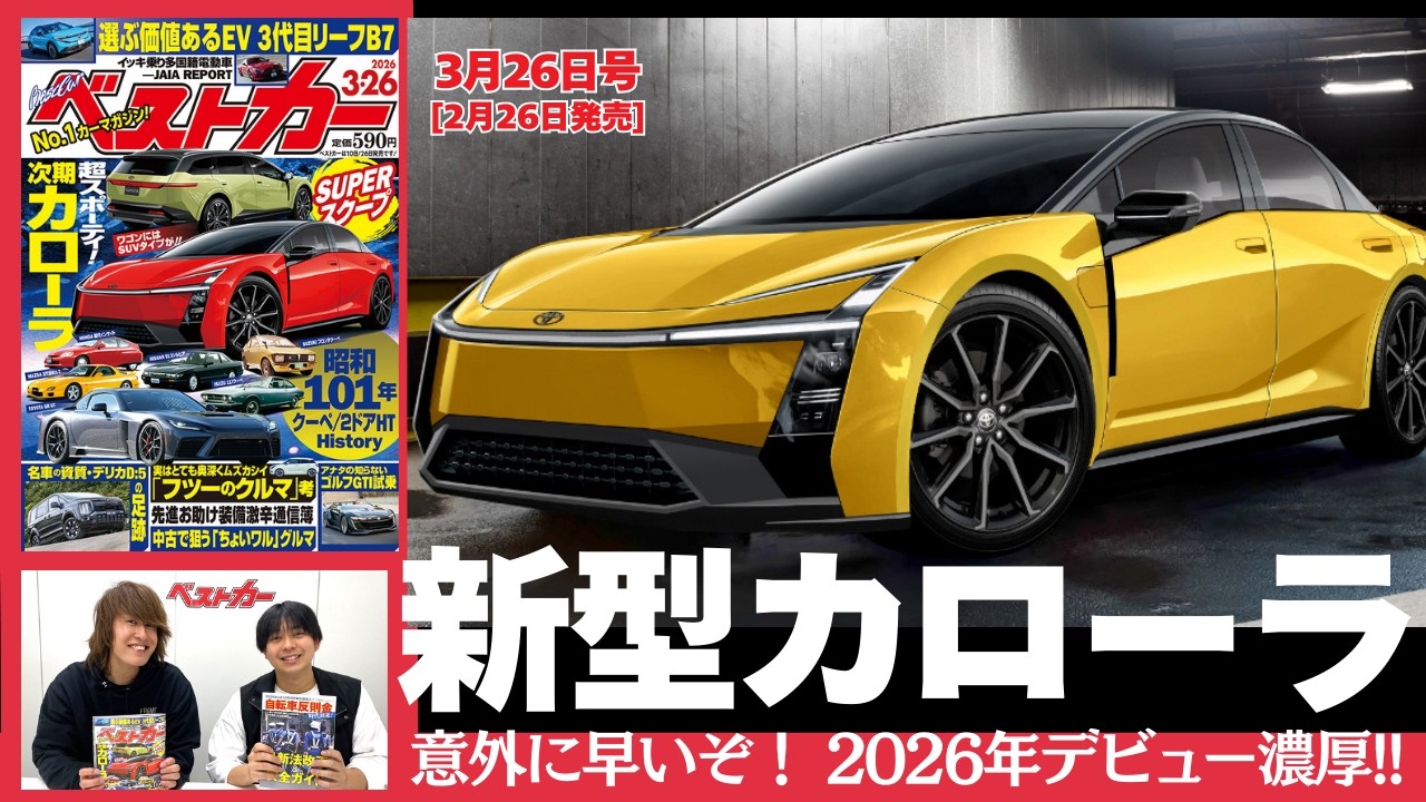 意外と早く、今年(2026年)デビューが濃厚!! ジャパンモビリティショー2025に出品されたトヨタカローラコンセプトが「ほぼそのまま」のスタイルで登場し、スポーティモデルに生まれ変わる! さらに、車高を上げたカローラツーリングSUVもカッコいいぜ!
