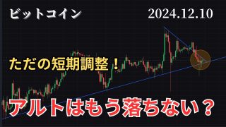 12/10 仮想通貨相場分析 この下落は短期調整 BTC、ETH、SOL、XRP、ADA、DOGE、AVAX、BNB、GOLDチャート分析