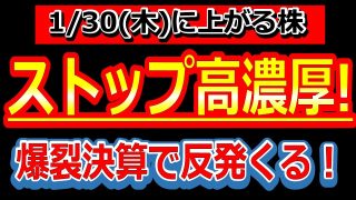 【ストップ高濃厚!爆裂決算で反発くる!】1/30(木)に株価が上がる株・明日上がる株・株式投資日本株最新情報